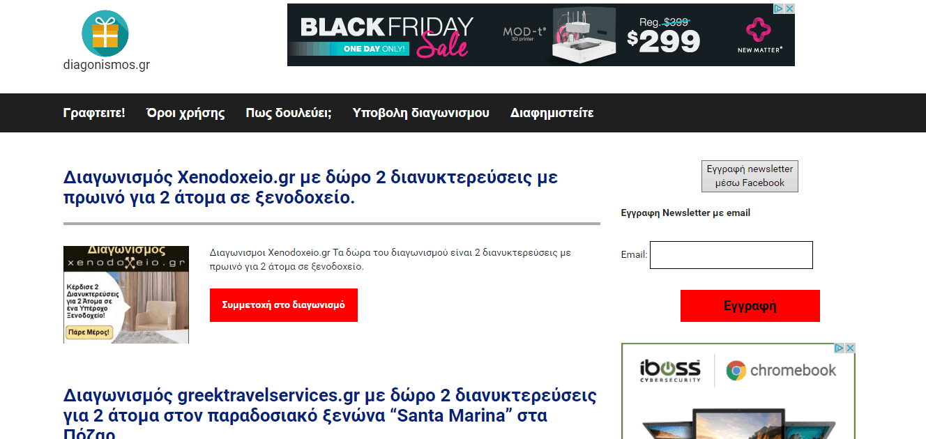Παρέχει κι αυτό από την πλευρά του newsletter για να σου έρχονται όλοι οι νέοι διαγωνισμοί στο email σου, καθώς επίσης μπορείς να διοργανώσεις τον δικό σου διαγωνισμό εύκολα και γρήγορα μέσω της φόρμας υποβολής διαγωνισμών που σου παρέχεται.