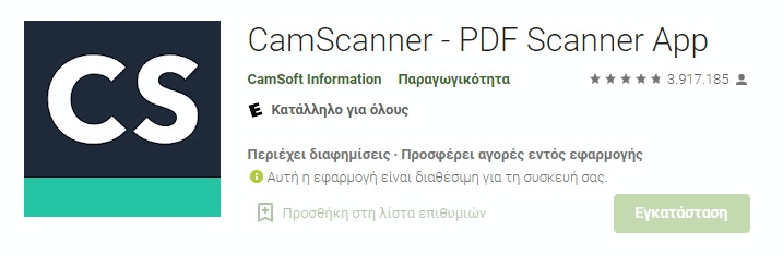 Το CamScanner, το οποίο είδαμε παραπάνω είναι διαθέσιμο και σε Android. Θα μπορούσαμε να πούμε ότι είναι η καλύτερη δωρεάν εφαρμογή για σκανάρισμα σε android συσκευές.