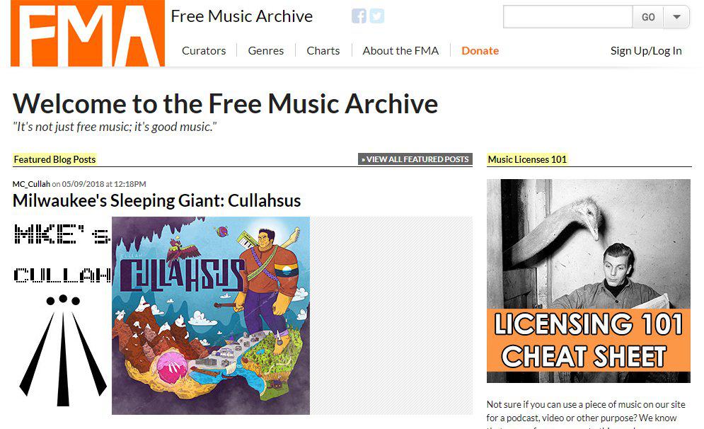Το Free Music Archive είναι ουσιαστικά μια διαδικτυακή βιβλιοθήκη μουσικής, η οποία παρέχει νόμιμη μουσική από το WFMU. Όλα τα κομμάτια είναι ανεβασμένα και μπορούν να χρησιμοποιηθούν υπό την άδεια CC-Licence.