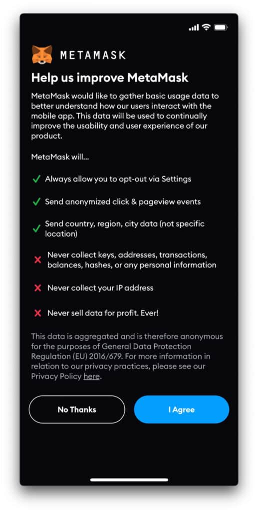 4. Στην επόμενη σελίδα που θα σου εμφανίσει, θα σου βγάλει μία ερώτηση αναφορικά με τη συλλογή δεδομένων σου για λόγους βελτίωσης. Εάν δε θέλεις να τα μοιραστείς διάλεξε το “No Thanks”. Όμως, αν δεν έχεις πρόβλημα διάλεξε το κουμπί “I Agree”.
