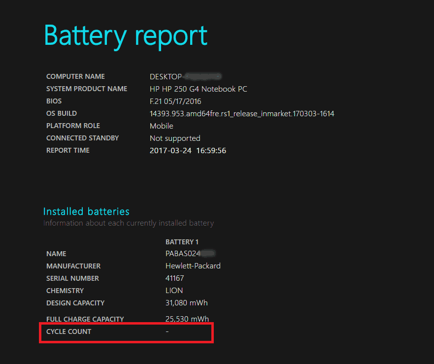 Γι ‘αυτό το λόγο, τόσο τα Windows όσο και τα macOS παρέχουν έναν τρόπο για να δεις τους κύκλους που έχει κάνει η μπαταρία του laptop σου. Αυτό σημαίνει το πόσες φορές έχει αδειάσει και έχει γεμίσει στο πλήρες. Όσο πιο χαμηλός είναι αυτός ο αριθμός κύκλων, τόσο πιο υγιής είναι η μπαταρία του laptop σου.