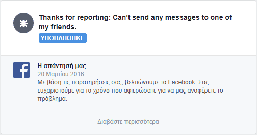 Σημείωση: Η αλήθεια είναι πως, μέσα από τη κοινότητα που παρέχεται, δεν έρχεσαι σε απευθείας επικοινωνία με το Facebook, αλλά με ειδικευμένους χρήστες και αρκετά συχνά με άτομα που δουλεύουν στο κοινωνικό δίκτυο.