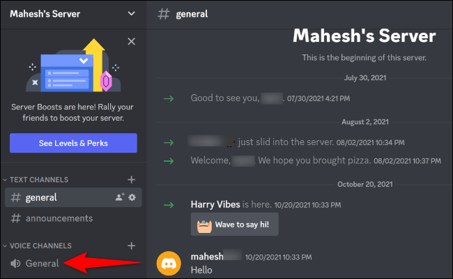 3. Μετά, σε αυτόν τον server θα πρέπει να επιλέξεις και να μπεις σε ένα voice channel.