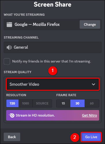Κοινή χρήση οθόνης σε έναν server στο Discord