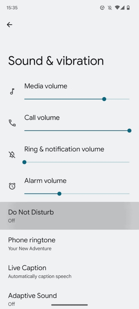 2. Έπειτα, πήγαινε προς τα κάτω και πάτα στην επιλογή Sound & Vibration (Ήχος & δόνηση).