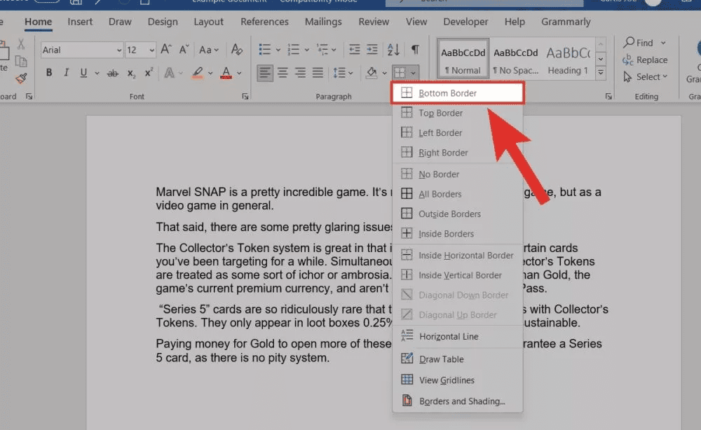 3. Έπειτα, πήγαινε επάνω στο πλαίσιο που γράφει Paragraph (παράγραφος) και πάτα στο βελάκι δίπλα από το εικονίδιο με τα περιγράμματα.