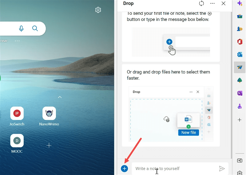 Αφού λοιπόν έχεις ενεργοποιήσει το Microsoft Edge Drop στο sidebar θα μπορείς να κάνεις κοινή χρήση αρχείων. Συγκεκριμένα: