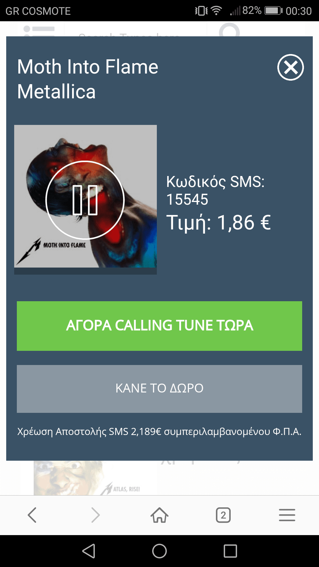 Μόλις στείλεις το SMS η υπηρεσία θα σε χρεώσει με το ανάλογο κόστος του κομματιού και λίγα λεπτά αργότερα θα σου σταλθεί SMS επιβεβαίωσης.