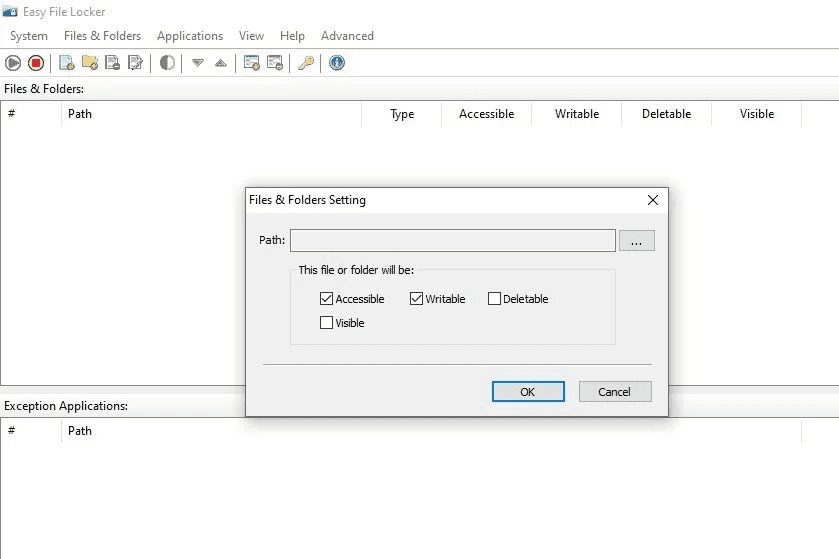 Το Easy File Locker είναι ένα δωρεάν αξιόπιστο software για το κλείδωμα αρχείων. Σου παρέχει διάφορες επιλογές για την προστασία των αρχείων και των φακέλων σου, συμπεριλαμβανομένου του περιορισμού της πρόσβασης άλλων σε αυτά και του περιορισμού της ικανότητάς τους να τα διαγράφουν. Μπορείς επίσης να κάνεις τα αρχεία και τους φακέλους αόρατους.