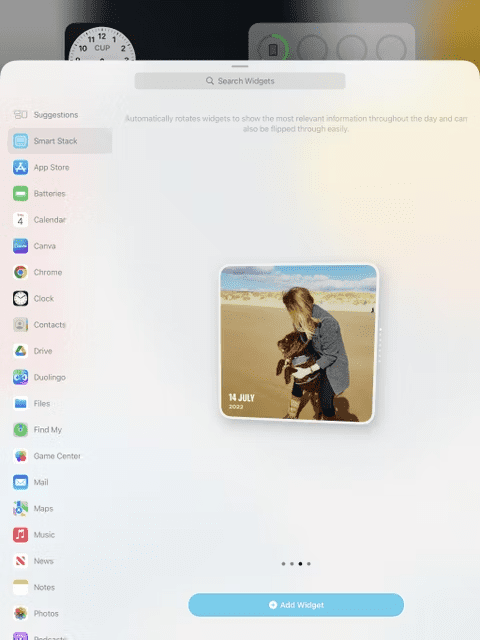 Όταν προσθέτεις ένα νέο widget στην αρχική οθόνη του iPad σου, μπορεί να παρατηρήσεις την επιλογή προσθήκης Smart Stack. Το Smart Stack είναι ουσιαστικά μια συλλογή από widgets, το ένα πάνω στο άλλο, η οποία εναλλάσσει αυτόματα τα widgets σου όλη την ημέρα, ανάλογα με το τι πιστεύει το iPad σου ότι θέλεις να δεις. Ας δούμε λοιπόν πως θα το δημιουργήσεις: