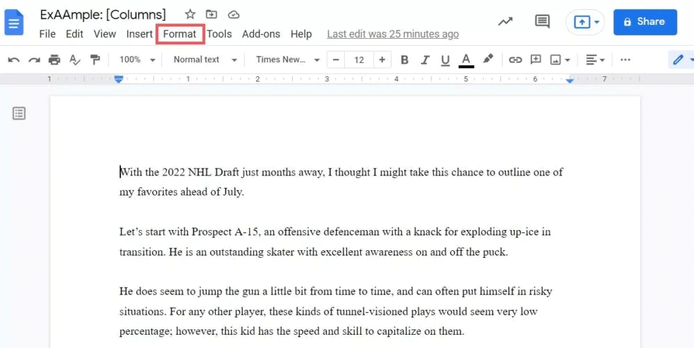 Η διαδικασία για να χωρίσεις το κείμενό σου σε στήλες σε κάποιο Έγγραφο Google είναι πάρα πολύ εύκολη. Ακολούθησε απλώς τα παρακάτω βήματα:
