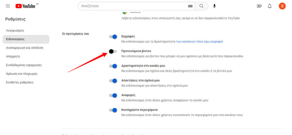 Και είσαι έτοιμος! Με αυτόν τον τρόπο θα έχεις αισίως απενεργοποιήσει τα προτεινόμενα βίντεο στο Youtube από το PC σου. Αντίστοιχα από κινητό, θα πρέπει να μπεις στο app, να πατήσεις στο εικονίδιο του προφίλ σου, να επιλέξεις τις Ρυθμίσεις, μετά τις Ειδοποιήσεις και τέλος να απενεργοποιήσεις τον διακόπτη δίπλα από το “Προτεινόμενα βίντεο’.