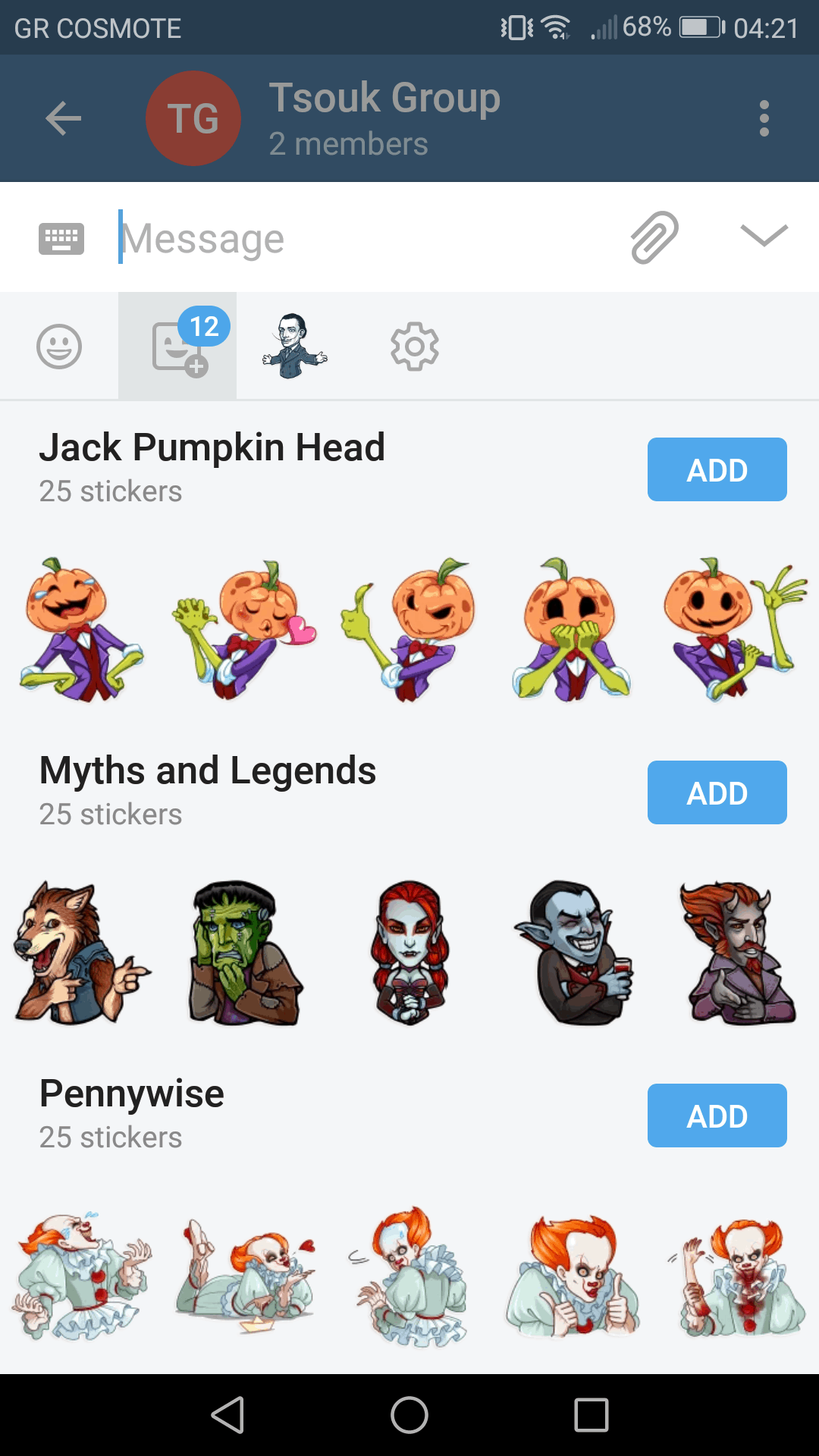 Τα γνωστά stickers που θα βρεις σε κάθε messaging app υπάρχουν επίσης διαθέσιμα και στο Telegram μέσω του @Stickers bot. Μπορείς να δεις τα stickers προτού τα στείλεις σε μια συζήτηση, να αναζητήσεις και να εγκαταστήσεις καινούργια.