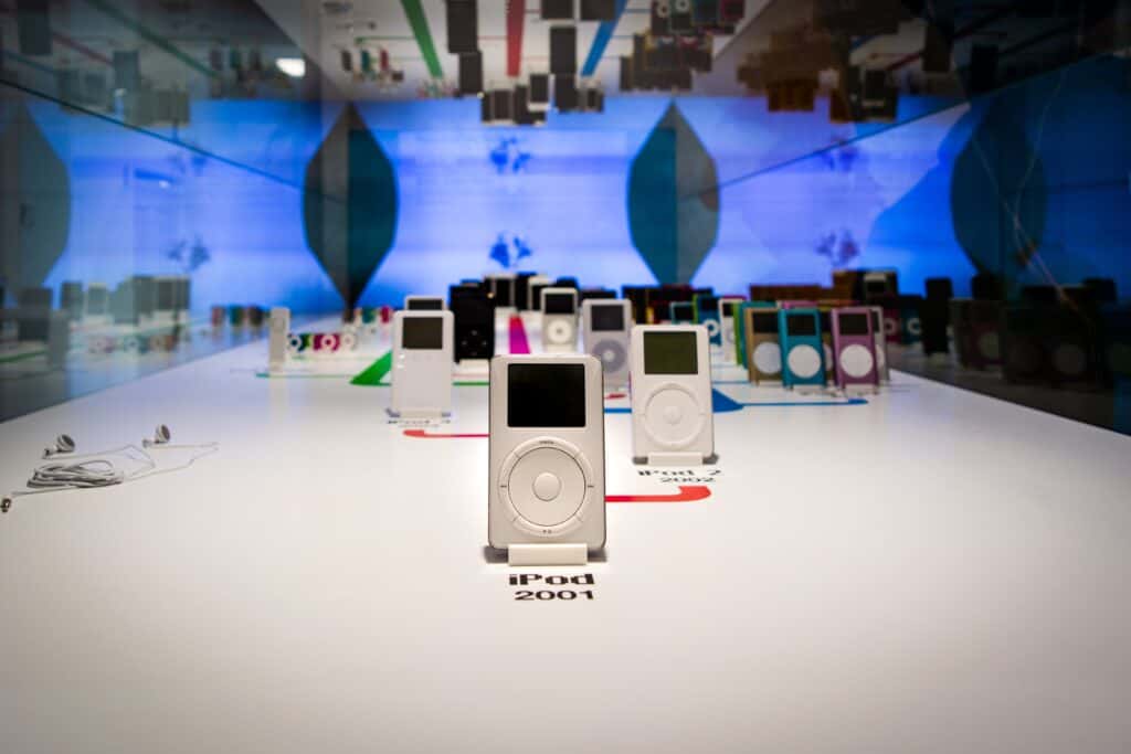 Το iPod με τον τροχό κύλισης και το ωραίο design του ήρθε το 2001 για να μας “υποσχεθεί ότι θα έχουμε 1000 μουσικά κομμάτια στην τσέπη μας”. Με αυτό το σλόγκαν και γενικότερα το ευφυές marketing του Jobs η Apple μέχρι και το 2007 κατάφερε να πουλήσει περισσότερες από 100 εκατομμύρια συσκευές iPod.