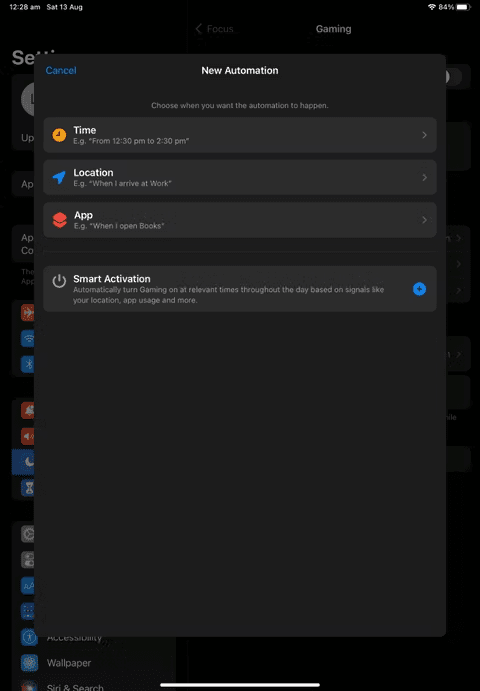 1. Πήγαινε πάλι στα Settings, μετά Focus και μετά Gaming.