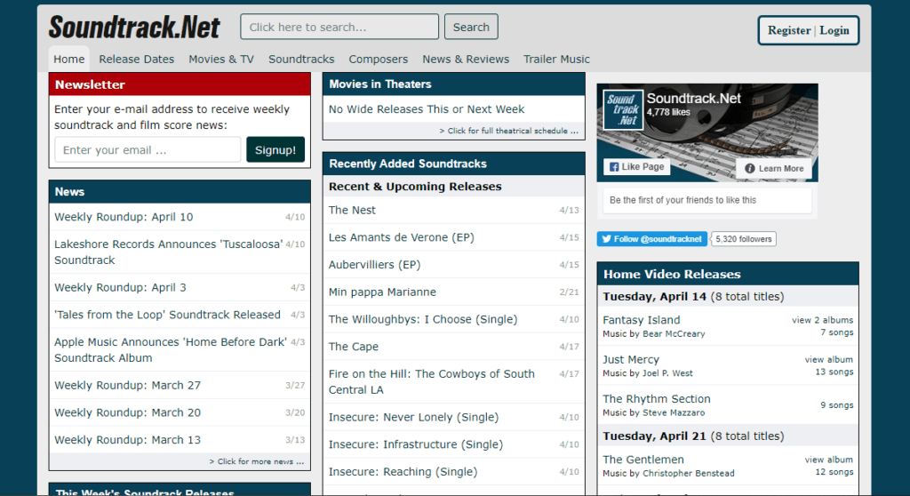Αν και η ιστοσελίδα διαθέτει ενότητα με ειδήσεις, δυστυχώς σταμάτησε να ενημερώνεται με νέα άρθρα εδώ και αρκετά χρόνια. Αν και δεν μπορεί να συγκριθεί με τις δύο παραπάνω ιστοσελίδες, αποτελεί μια αξιόλογη επιλογή για soundtracks από όχι και τόσο δημοφιλείς σειρές και ταινίες.