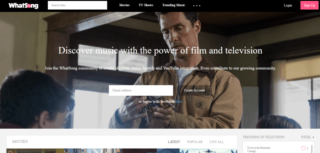Μια επίσης χρήσιμη ιστοσελίδα για εύρεση soundtrack από μια ταινία ή μια σειρά είναι το WhatSong. Οι λίστες χωρίζονται σε δύο βασικές κατηγορίες, ήτοι ταινίες και σειρές. Αν και το WhatSong συμπεριλαμβάνει έναν τεράστιο αριθμό μουσικών κομματιών  όπως το Tunefind, το αρνητικό θα λέγαμε είναι ότι συμπεριλαμβάνει αρκετές ταινίες με κενές μουσικές λίστες. Ωστόσο για τις πιο δημοφιλείς σειρές όπως αυτές του Netflix ή του Disney+ καθώς και όλες τις γνωστές ταινίες είναι σίγουρο ότι θα βρείτε όλες τις λίστες τραγουδιών.