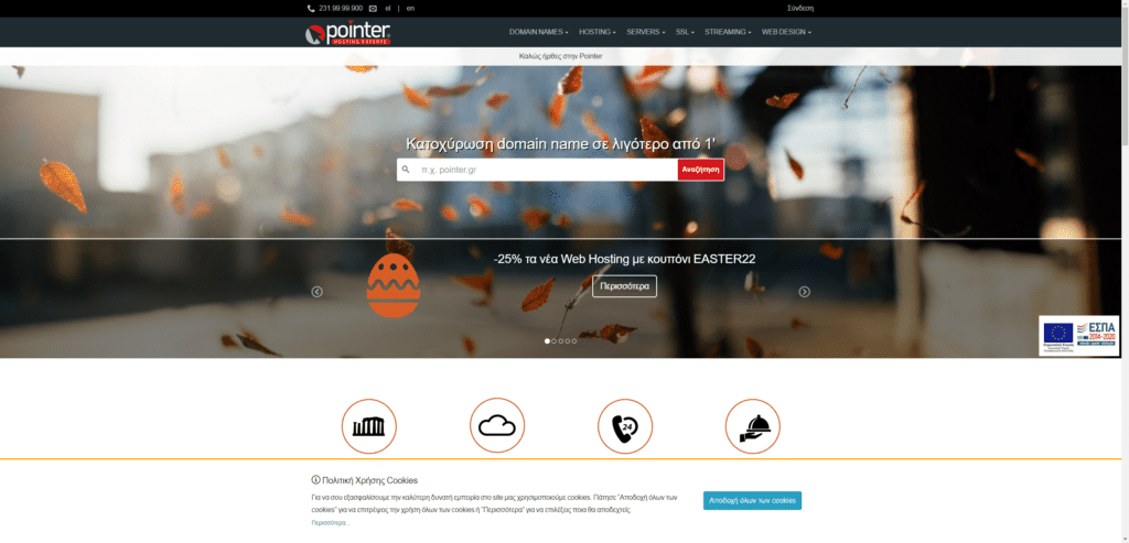 Το Pointer είναι μία αρκετά οικονομική πλατφόρμα για Hosting. Ανάλογα με τον Domain και το θέμα που θέλεις να έχει η σελίδα σου, προσφέρει και διαφορετικά πακέτα. Έτσι, θα μπορείς να βρεις αυτό που σου ταιριάζει. Το Pointer προσφέρει μία μεγάλη γκάμα επιλογών για απλούς χρήστες αλλά και Web Developers, μεταπωλητές και μεγάλα Agencies.
